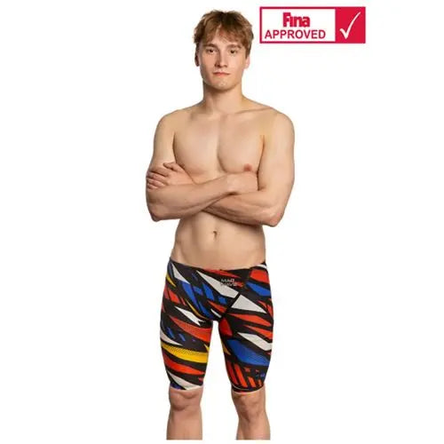 The FORCESHELL Racing Suit is designed using innovative fabric, which has the strongest possible compression and hydrophobic characteristics, provided by reinforced polyester mesh and MW Lotus Fabric technology. FINA approved.